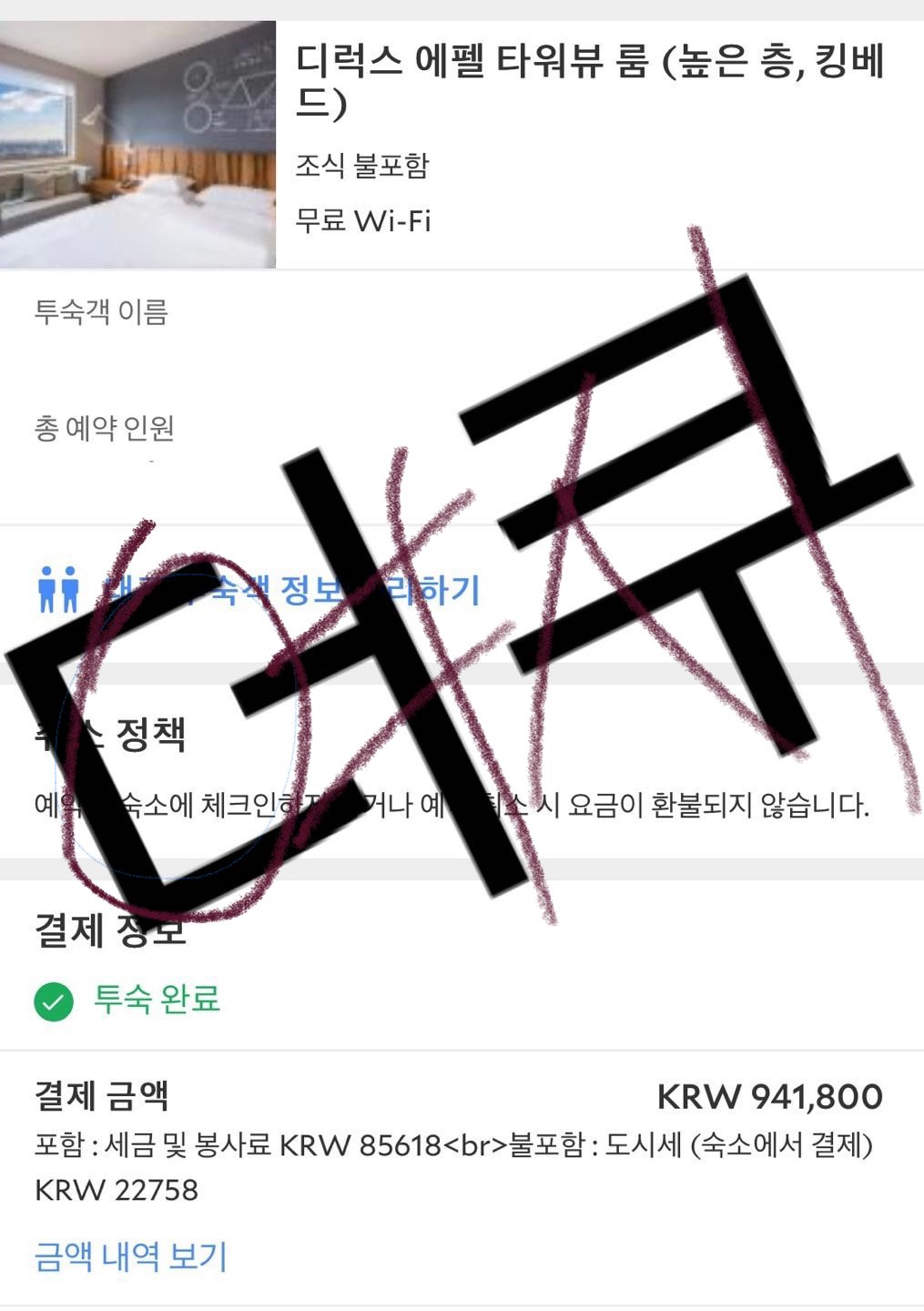 가격 - 하얏트 3박 도시세 세금 포함 98만원 / 풀만 5박 도시세 세금 포함 212만원(가격실수함 212만원이야!!)