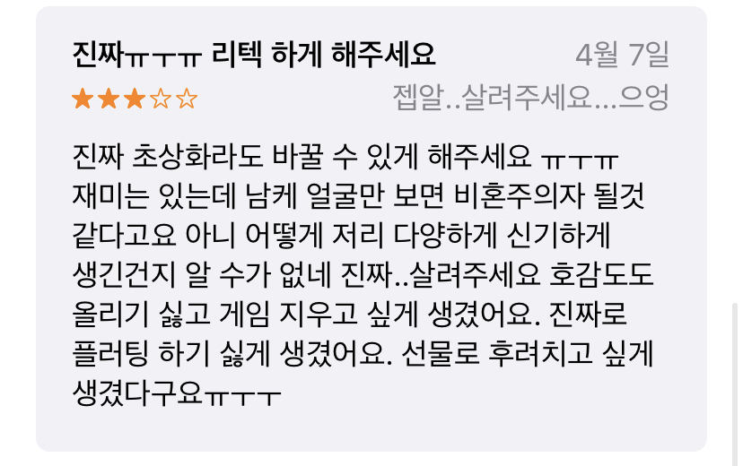 작성자딸기초코생크림 작성시간 21.06.14 모바일버전 맨날 시작해서 리텍 시간 엄청 오래걸려서 싹 갈고 겜 시작하면 얼마안되서 리텍하는데 질려서 접음..맨날반복