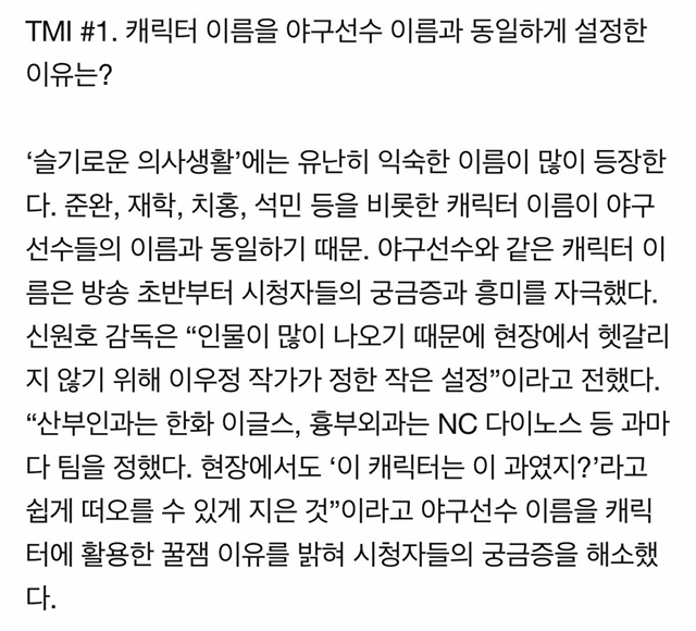 작성시간 21.06.19 등장인물을 야구선수로 하는 건 깨알재미 포인튼데.. 내가 예민한 건지 이렇게 아 저 등장인물은 그 야구선수 이름이구나ㅋㅋㅋㅋ 하고 매칭이 되는 상황에서 환자이름은 좀 꺼림직해ㅜㅜ 가뜩이나 부상에 예민한 스포츠선수들이라서 더..
