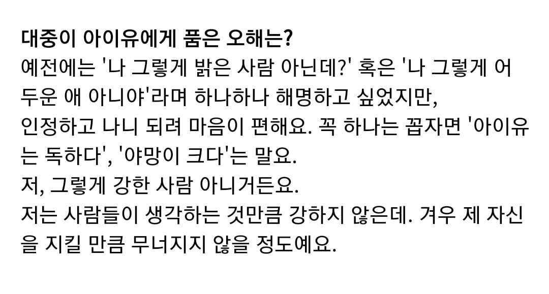 위와 같은 당시 인터뷰를 보면 대중들의 극과 극 평가 속에서 23살 아이유가 겪고 있던 혼란스러움을 알 수 있음