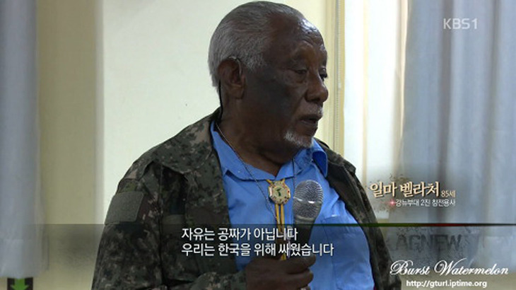 ▲2016년 방한해 전사자명비에 헌화 후 눈물을 글썽이는 에티오피아 참전용사