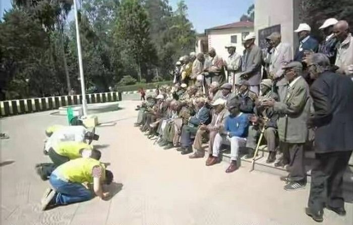 ▲참전용사들에게 큰절을 올리는 에티오피아 후원회와 한국교회단체