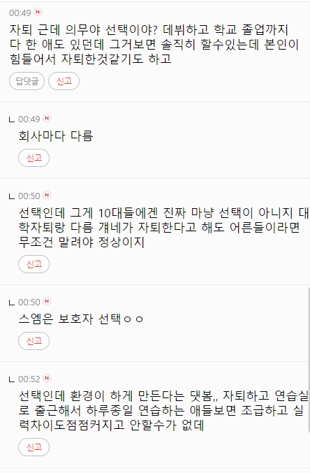 + 아이돌들이 자퇴 한다고 해도 기획사나 어른들이 뜯어말려야 한다고 봄