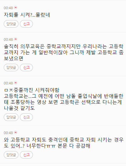 중학교 자퇴도 주어 없을정도로 흔하다는게 조금 충격적이고 그럼