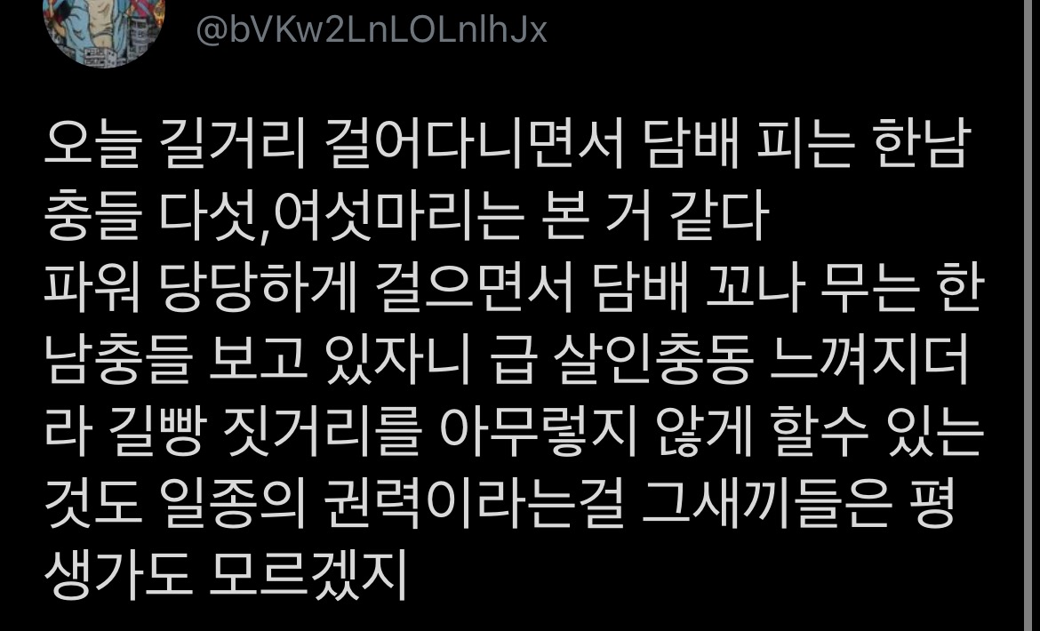 작성자남혐하고비엘좋아해요 작성시간 21.07.05 한남이 도시미관 다 해친다니까