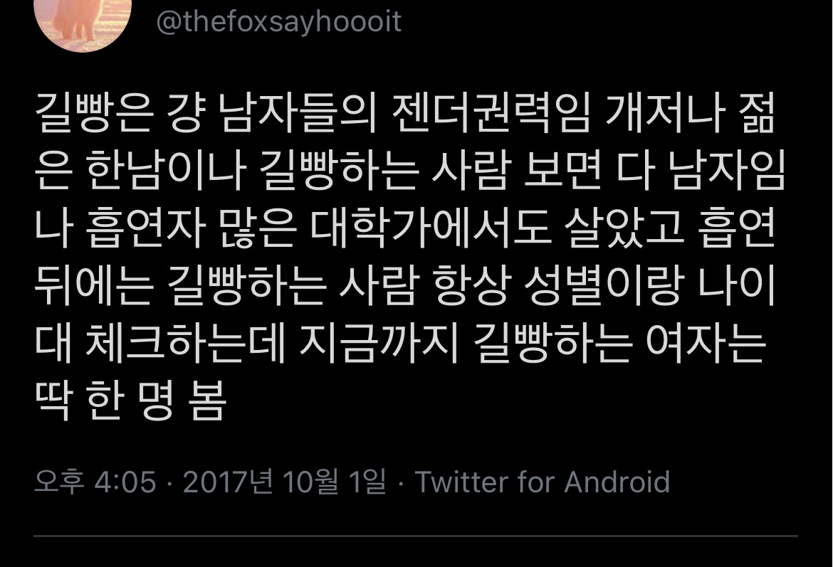 작성자좋은말만하는여시 작성시간 21.07.05 걸어서 길빵=99.9확률로 남자