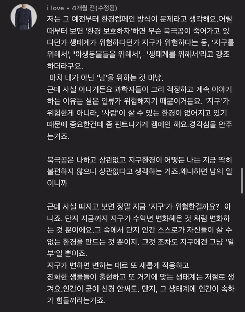 우리는 당장 지구를 보호하기 위한 환경운동이 아니라
