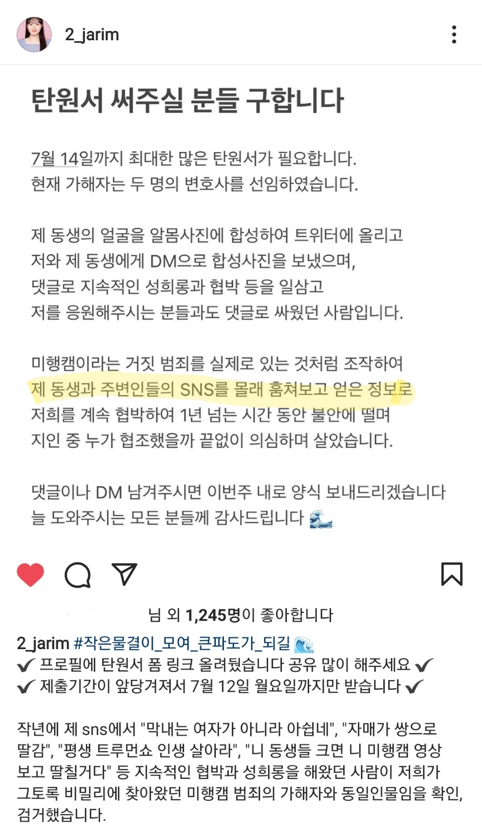 + 피해자 언니분과 피해자분께 허락을 받은 후 게시함