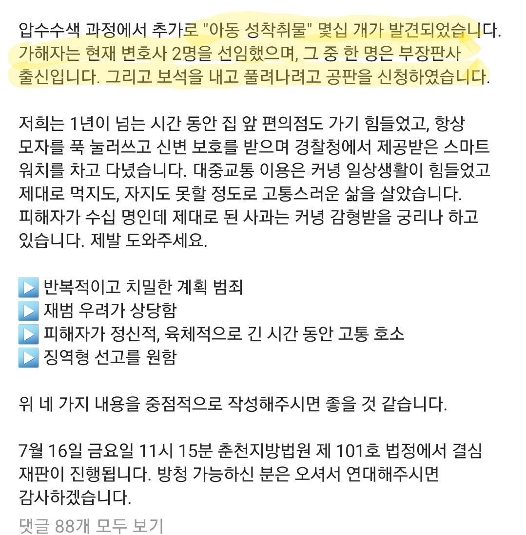 가해자는 부장판사 출신 포함 2명의 변호사 선임 + 보석받으려고 공판 신청함