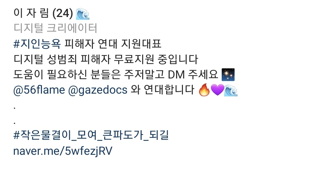 특히 인스타그램 계정주(피해자 언니)는 앞장서서 여성 피해자들과 연대하던 분이야