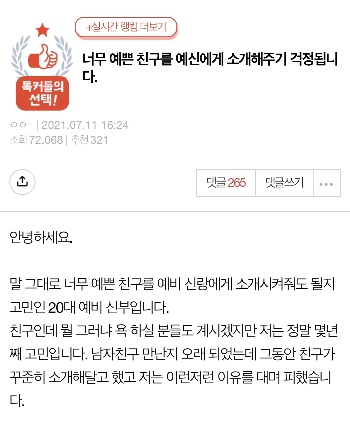 작성자바이킹스워프갈돈으로씨드사지 작성시간 21.07.14 저렇게 예쁘다는 친구한테 의사들이 대쉬 안 해봤겠냐ㅋㅋㅋ 절친이 결혼할 남자 어떤 사람인지 보고싶은게 뭐가 문젠데ㅜ 친구는 이거 보면 기가 차겠다