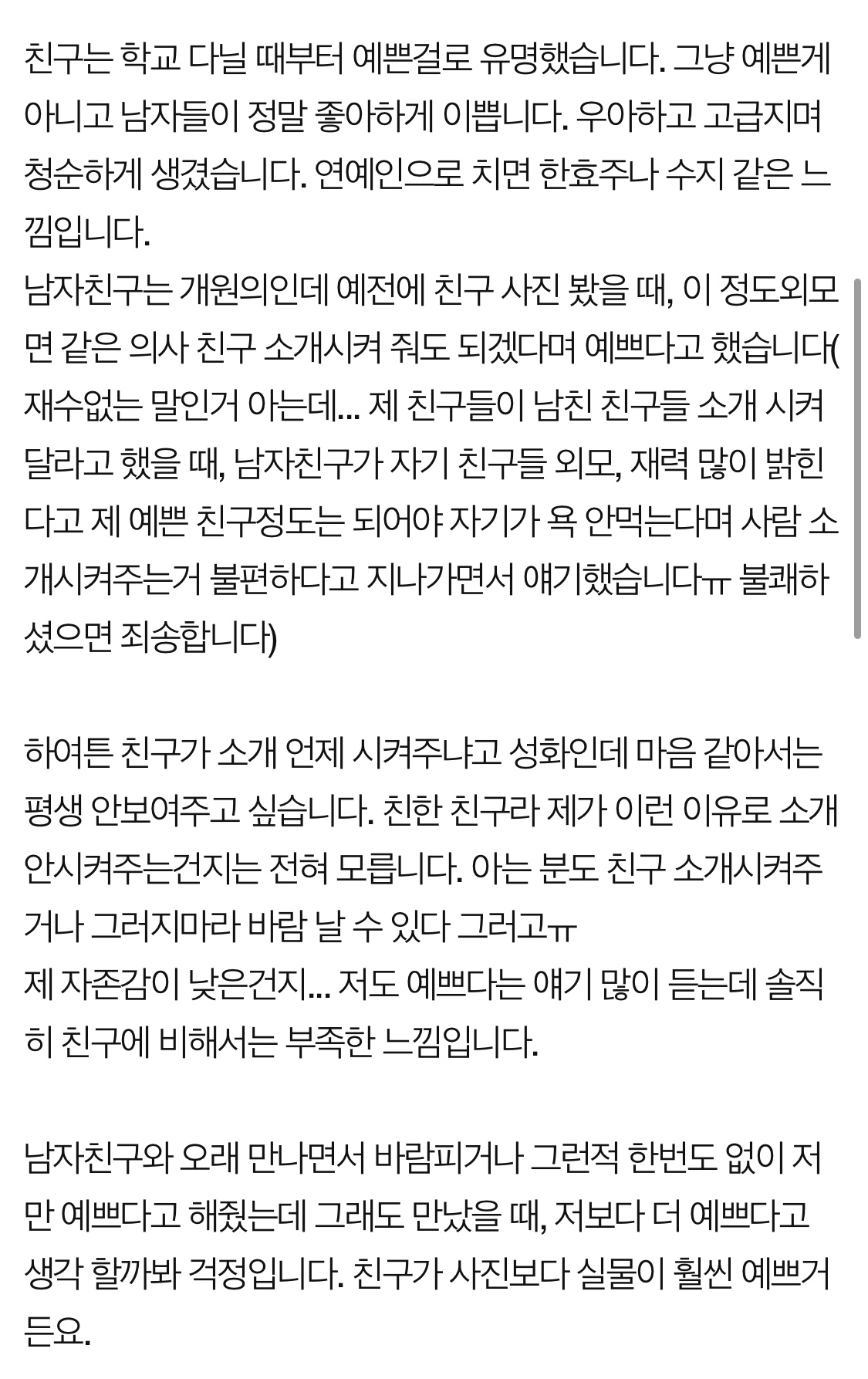 나도 개오래된 친구가 결혼한대면 소개해달라고 할 거 같음. 그리고 명확히 안된다고 안하고 계속 둘러댔으니까 친구가 계속 소개해달라하는 거지;;