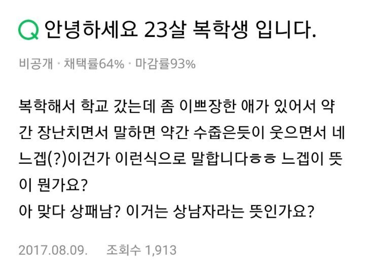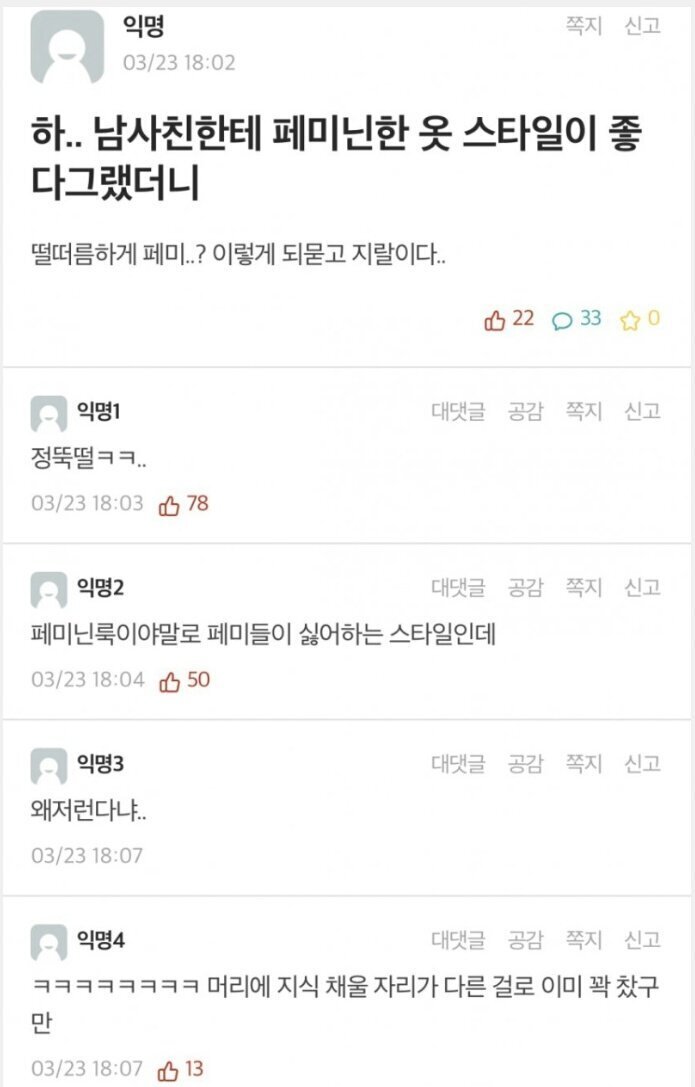 [배꼽의행방]느겝이 뜻이 뭔가요? 작성자가문의 영광굴비|작성시간21.07.12|조회수6,348 목록 댓글 33 글자크기 작게가 글자크기 크게가 출처 : 여성시대 가문의 영광굴비 다음검색 현재 게시글 추가 기능 열기 북마크 공유하기 신고 센터로 신고 댓글 댓글 33 댓글쓰기 답글쓰기 댓글 리스트 작성자땡땡잠옷2 | 작성시간 21.07.12 마지막... 작성자inner공주 | 작성시간 21.07.13 퇴페밐ㅋㅋㅋㅋㅋㄴㅋㅋㅋㅋㅋ 작성자반반무적당히 | 작성시간 21.07.13 와이씨. 급이 맞아야 대화도 하고 토론도 하고 그러는거지; 작성자ACAI BOWL | 작성시간 21.07.13 ㅈㄴ멍청함 작성자아샷추존맛 | 작성시간 21.07.13 진짜 대가리가 없나봐 ㅋㅋㅋㅋ 댓글 전체보기