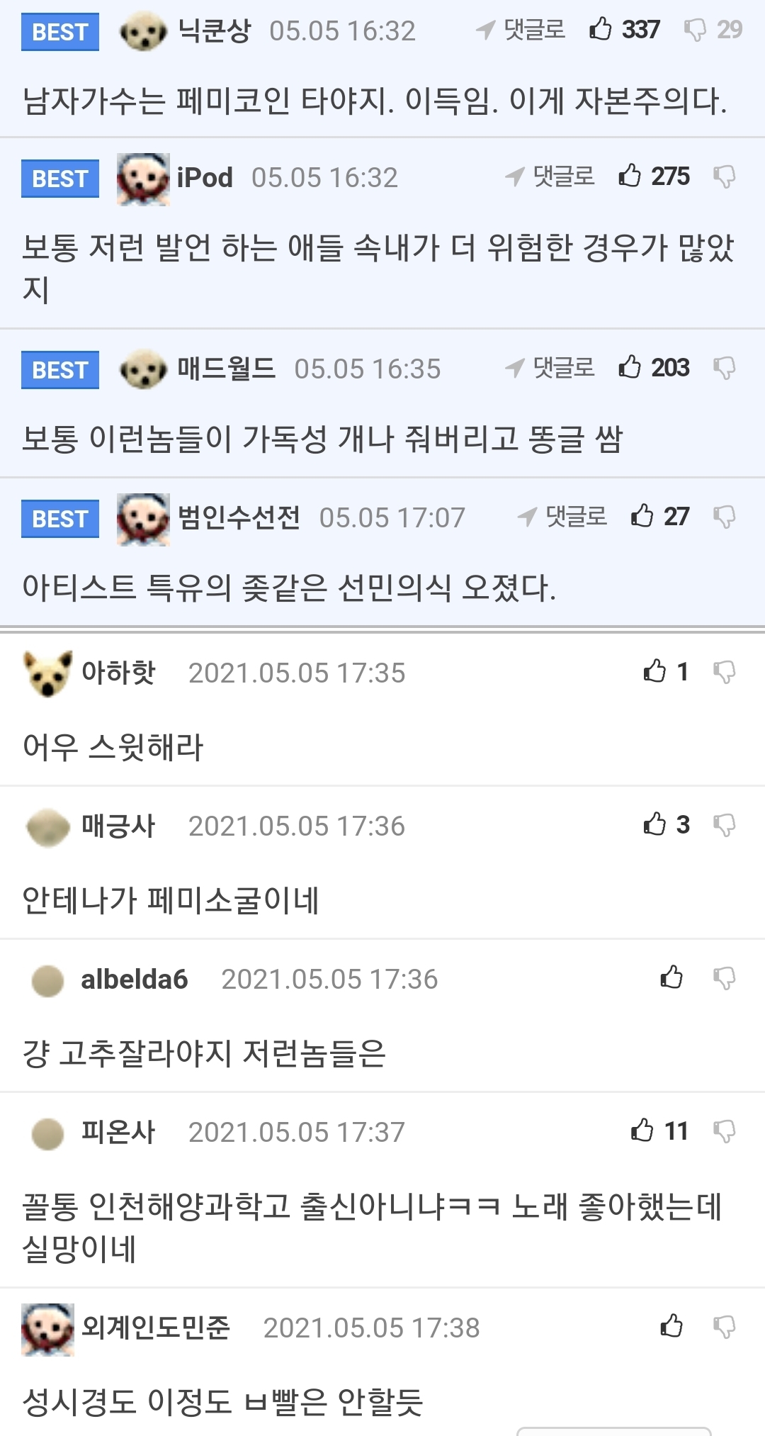 작성자Lavender dream 작성시간 21.07.14 이거 보고 남페미라면서 욕하는 인간들 수준...진짜.....