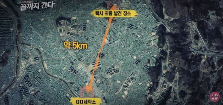 택시 발견된 장소에서 약 5km 떨어진 세탁소