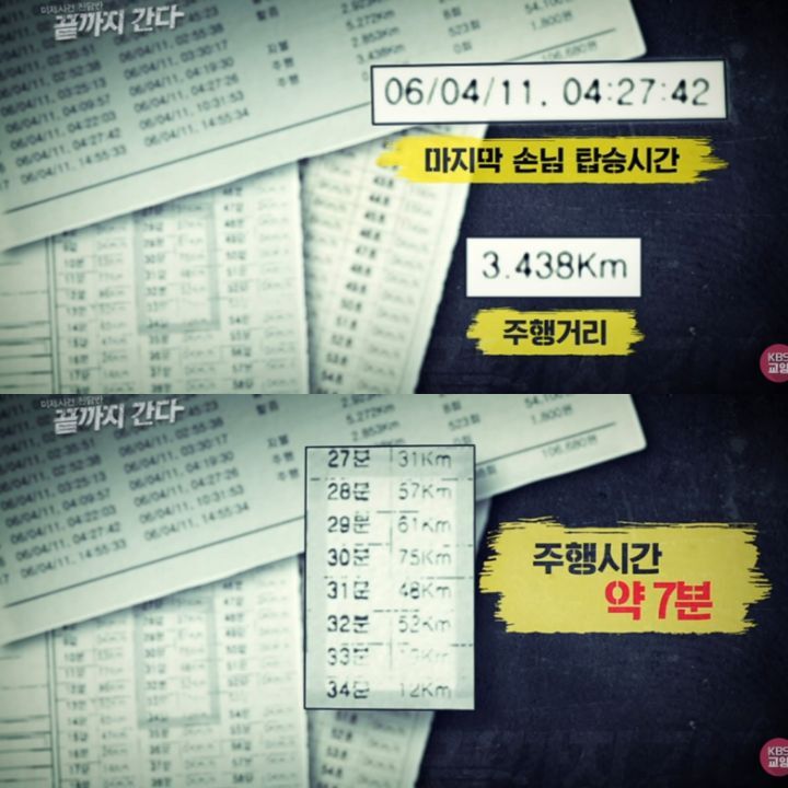 범인이 택시를 탄 후 7분 동안 주행거리 3.438km