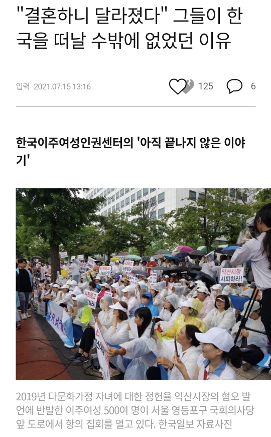 작성자사랑합니다 고객님 작성시간 21.07.17 진짜 매매혼을 국제결혼이라는 이름으로 그럴듯하게 포장해서 광고하는거 너무 혐오스러워 .ㅡ
