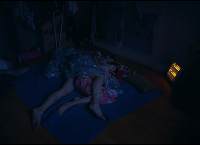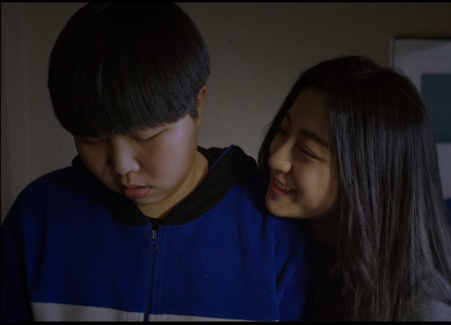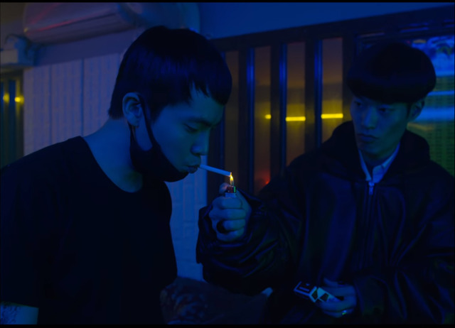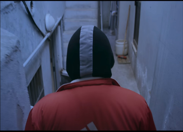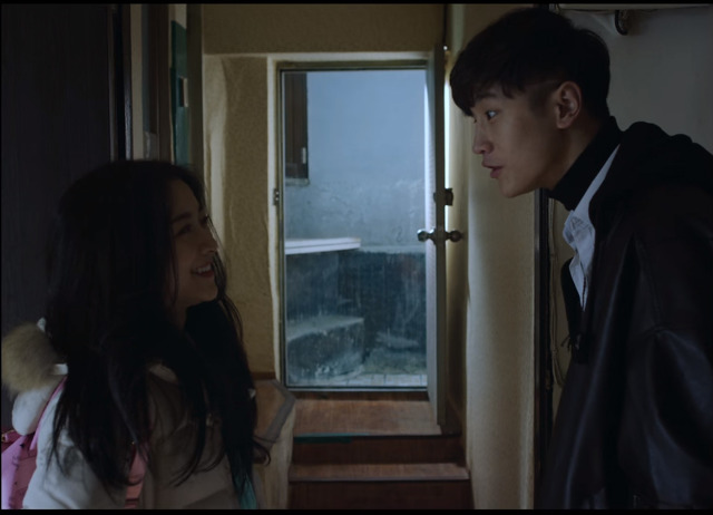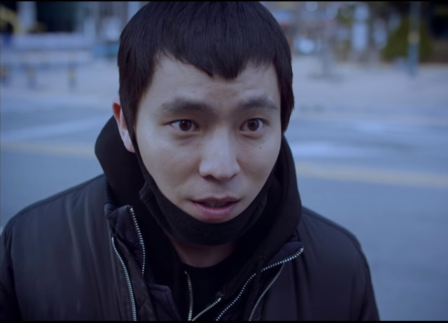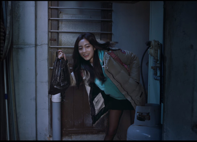 처음에 라면고르던 사람의 뒷모습이나오고 반지하로 들어가고있음.