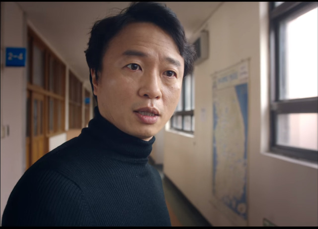 화면이 넘어가고 선생님으로 보이는 남자를 누군가 톡톡 쳐