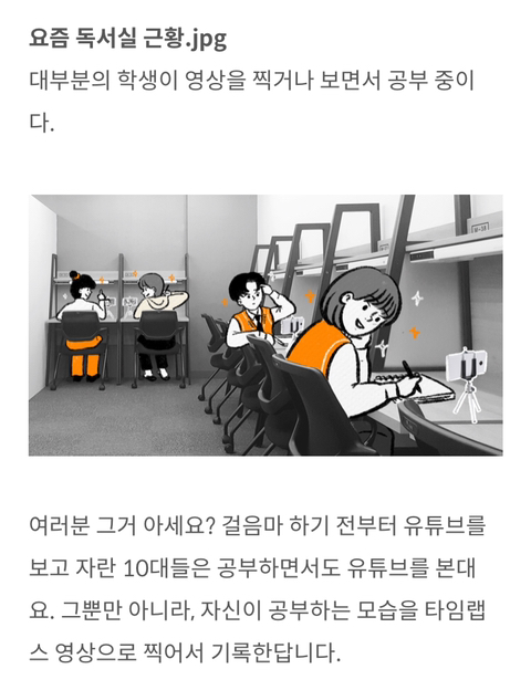 1. 요즘 고등학생들은 공부 도중에 휴대폰을 만지지 않기 위해 타임랩스로 영상 찍음