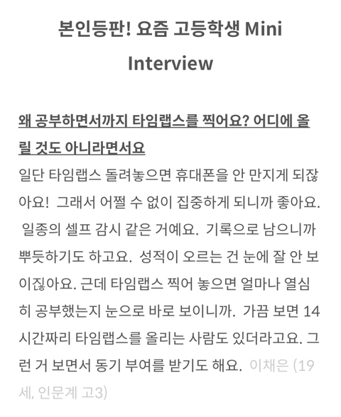 -기사 제목 읽고 혀부터 차신 분. “공부하면서 타임랩스 찍고 영상 보면 집중이 되냐? 요즘 애들 ㅉㅉ”