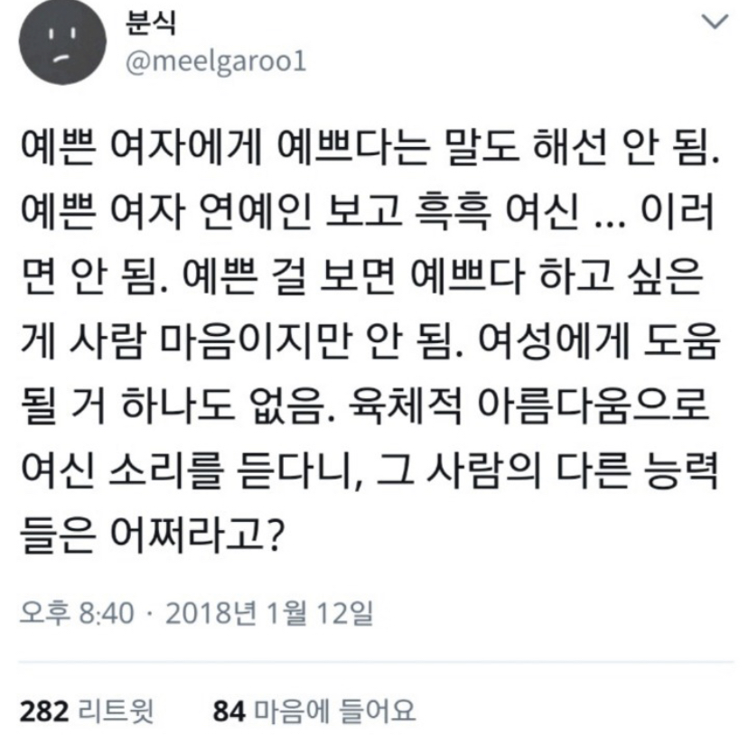 작성자골로가유 작성시간 21.07.19 하 근데 이게 참 현실에서 저런말하면 예쁘면 좋은거지 존나 예민하다고 왜저러냔 소리들어..ㅜ