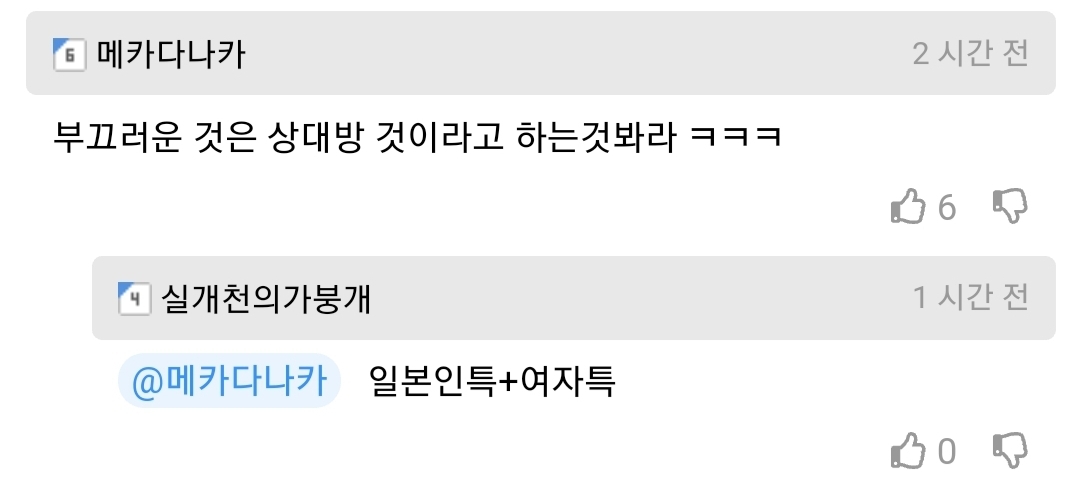작성자민트초코대마왕 작성시간 21.07.20 ㅅㅂ 병신들가태 일부러 놀리려고하는말, 반응보려고하는말(남자일본인들한테는 앙기모찌가 뭔뜻인지 아냐 이딴거안물음^^~) 인거 아니까 싫어하는한국말이다 하면서 기분나쁜티낸건데 ㅋㅋ 부끄러운것은 상대방것 어쩌고하면서 맥락못읽고 빡대갈처럼구네 ㅜ ㅜ