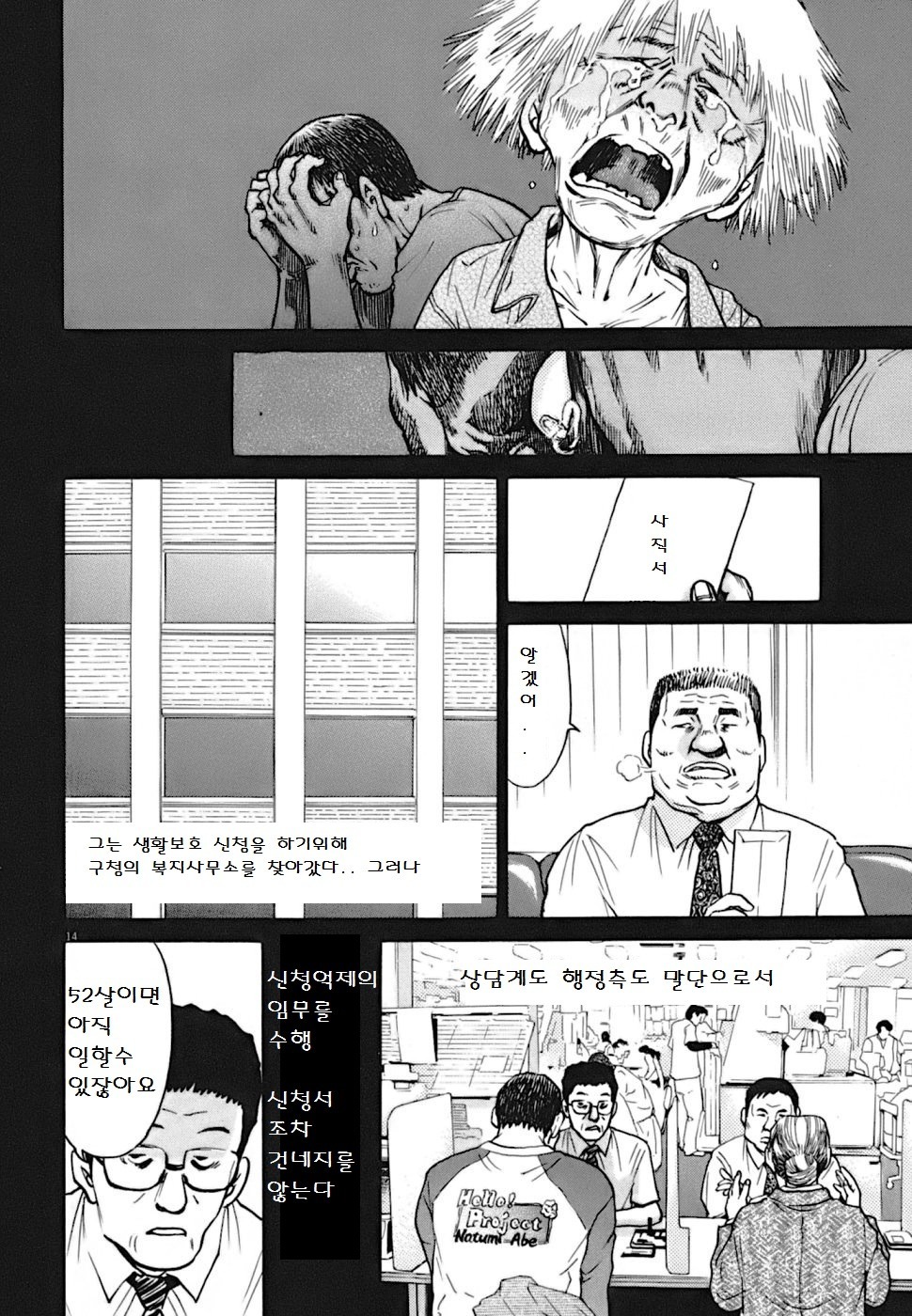 사직하고 복지사무소를 찾았지만 52살의 나이면 더 일할수 있다