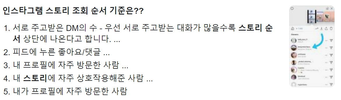 작성자이사도라 작성시간 21.07.24 이거 처음에 올린지 얼마 안됐을때 확인한다고 누르면 순서로 뜨는데 다시 껐다가 켜면 일정한 순서로 재정렬 돼있어. 맞팔과 맞팔 아닌 사람 위아래는 확실하고. 그리고 디엠 많이 하면 위로 가긴 하는데 것도 무조건적으로 많이하는 사람이 제일 위도 아님. 내가 매일 들여다보고 프로필 방문하는 계정도 절대 위로 안올라감. 좋아요나 댓글 많이 다는 사람이 맨 위도 아님. 상위권?은 어느정도 교류가 있는건 분명한데 그 안에서는 어떤 알고리즘인지를 모르겠어.