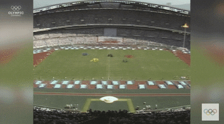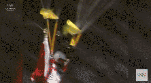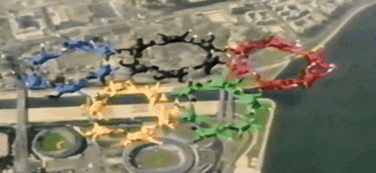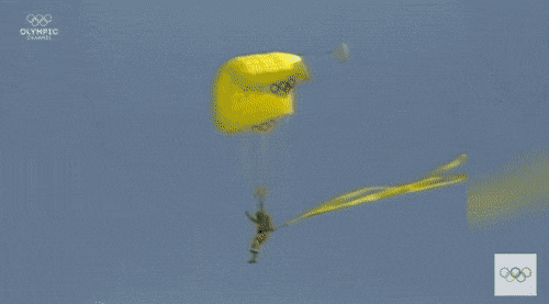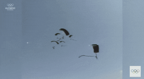 낙하산 타고 차례차례로 주경기장으로 착지함