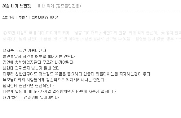 ⓒ 80만 회원의 국내 최대 다이어트 카페 '성공 다이어트 / 비만과의 전쟁' 카페 익게 글쓴이. ★ 공지 필독 후 이용권장! -