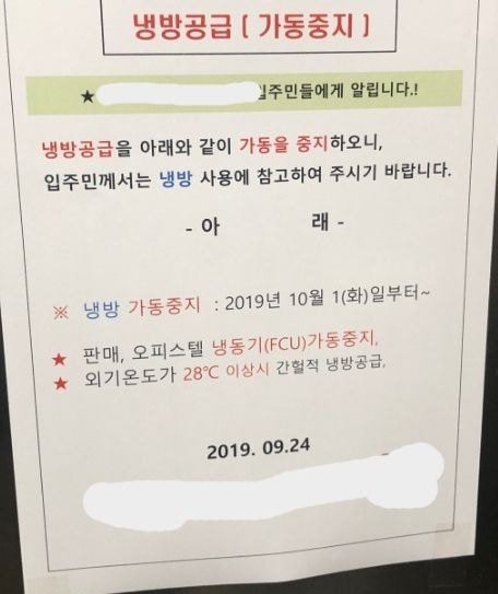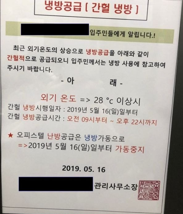 관리실에서 켜줘야 틀수 있는 중앙냉방 방식..