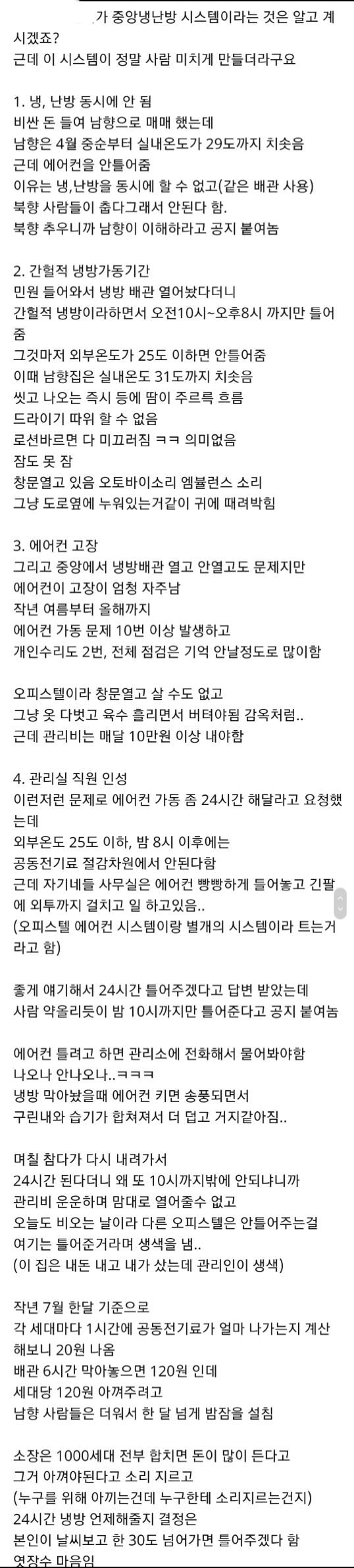 작성자홍시맛이나서홍시라한것인데 작성시간 21.07.28 중앙난방은 미친짓이야
