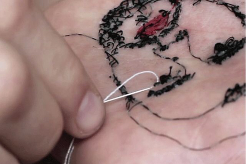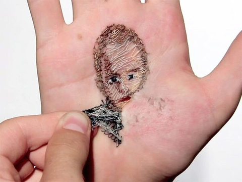손에 바느질해서 작품을 만드는 스페인 아티스트