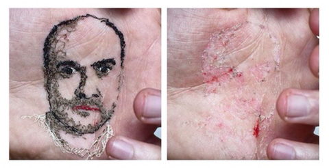 말그대로 손바닥 겉피부를 꼬매는것이기 때문에 고통은 느껴지지 않는다고..