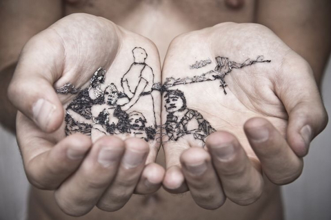 자기 가족들 친구들 파트너 선생님 등 사랑하는 사람들을 손바닥에 새긴다고 함
