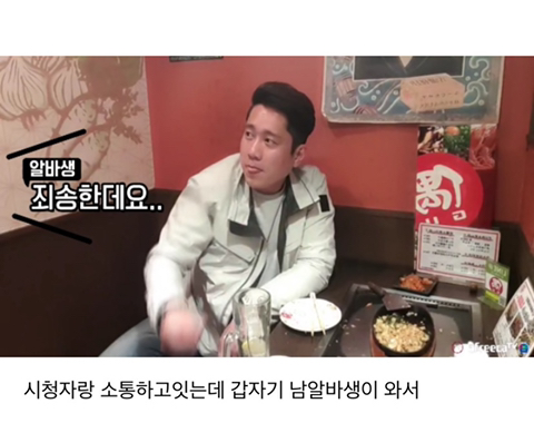 '촬영허가를 받고' 먹방을 하며 '한국어로' 시청자들과 소통하던 상황임