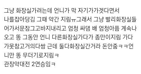 [흥미돋]더러움 주의) 언니랑 관장약참기 내기함 작성자가문의 영광굴비|작성시간21.07.28|조회수10,798 목록 댓글 20 글자크기 작게가 글자크기 크게가 출처 : 여성시대 가문의 영광굴비대체 카페 이름은 왜 똥이야기인건데.. 다음검색 현재 게시글 추가 기능 열기 북마크 공유하기 신고 센터로 신고 댓글 댓글 20 댓글쓰기 답글쓰기 댓글 리스트 작성자아졸지에개(이)됐네 | 작성시간 21.07.28 왜케 똥페티쉬있는 한남이 쓴거같냐ㅠ? 답댓글 작성자통데렐라 | 작성시간 21.07.28 나도 그생각함,, 저 이야기를 쓰기위해 똥이야기라는 카페에 가입하는 여성은 없을거같음,,, 답댓글 작성자둥지를틀어봐 | 작성시간 21.07.28 그니까 작성자강돌 | 작성시간 21.07.28 왜…? 작성자강아지 선크림 파나요 | 작성시간 21.07.28 ㅅㅂㅋㅋㅋ 댓글 전체보기
