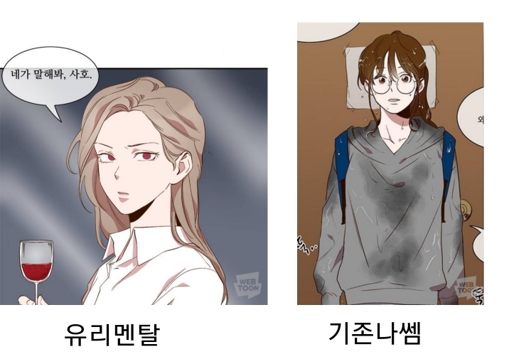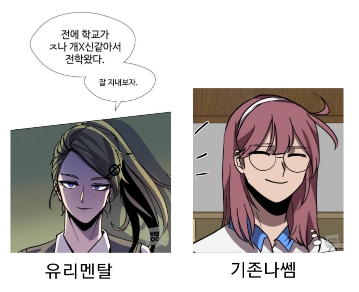 - 유리멘탈/기존나쎔이 확실하게 안 나뉘는 것 같은 웹툰은... 못 넣었습니다..