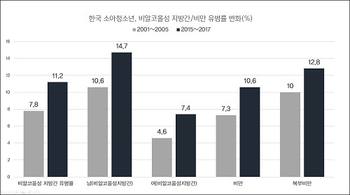 덧붙혀 20대 남성 비만율, 10대 청소년 지방간도 상승