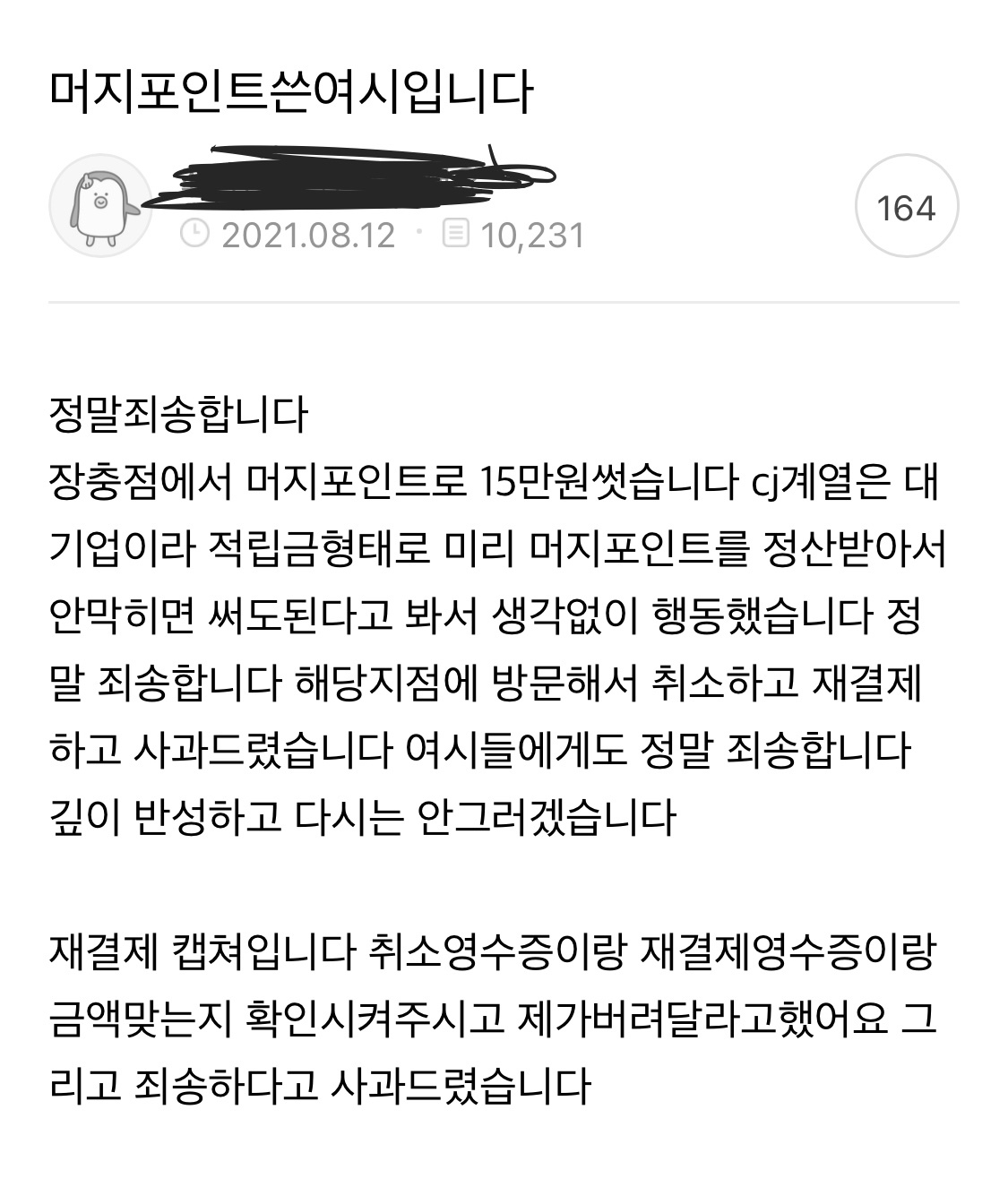 머지포인트 재결제 인증해 준 첫 번째 여시