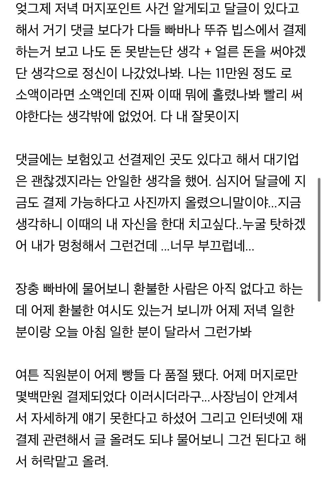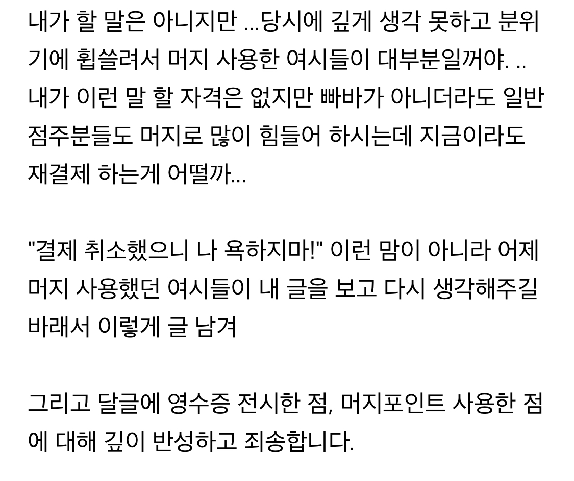 순간적으로 판단력이 흐려지고 점주분들은 다른 해결책이 있을 거라는 합리화에 잘못된 일은 저지를 수 있다고 생각해