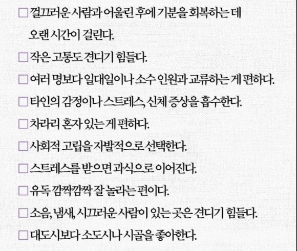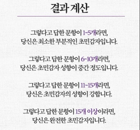 만일 이 글을 읽고 여시가 테스트에 포함하는 부분에 많은 부분 공감하고 엠패스(초민감자)에 속한다면