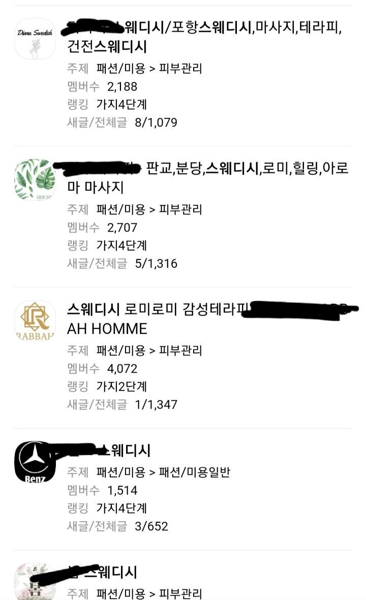 정말 많은 남성분들이 스웨디시 마사지를 주기적으로 받기위해 카페에 가입&활발한 활동을 하고 계시더라구요~