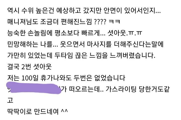 오해하지 마세요~ 불건전한 접촉은 없는 건전마사지 업소후기랍니다~!