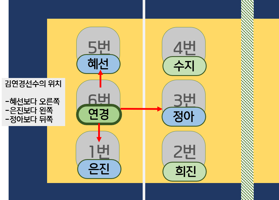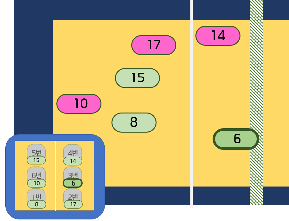 2. ๋ฑ๋ฒํธ6๋ณด๋ค ์ค๋ฅธ์ชฝ์ ์๋๊ฐ? = O