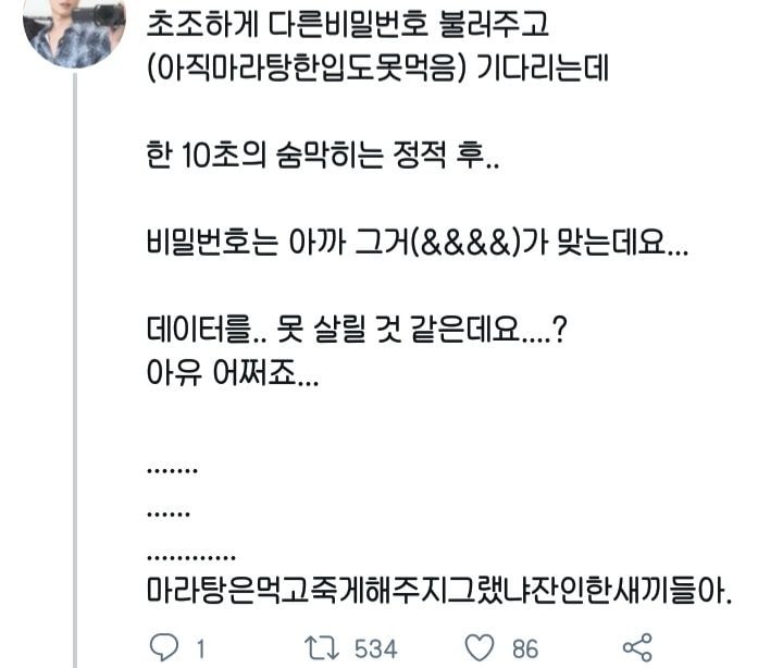 작성자뽀햅영 작성시간 21.08.22 와 나진짜 조심히 써야겠다 무서워ㅜㅜ
