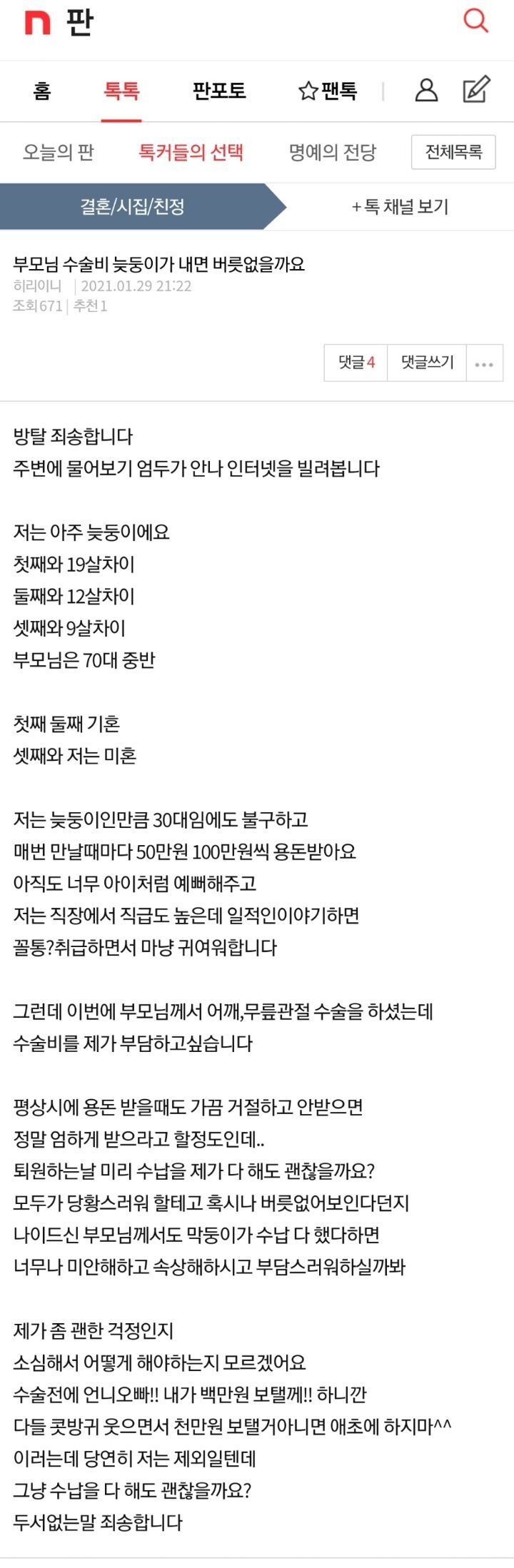 작성자부유하는 구름처럼 작성시간 21.08.24 이게 진짜 실화야...? 가능한 일이야?? 넘 따수운 가정이다 우리 부모님은 돈 엄청 좋아하셔서 상상도 안 돼...ㅋㅋㅋ 오히려 오빠랑 새언니가 내가 돈 쓰거나 무슨 날에 돈 드리면 더 잘되고 주라고 돈 더 얹어서 돌려줌..