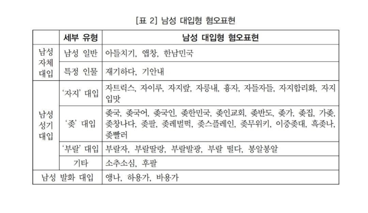 [스크랩] [흥미돋]남성 지시형 혐오표현 (추가) 작성자리치강쥐|작성시간21.08.24|조회수6,650 목록 댓글 60 글자크기 작게가 글자크기 크게가 출처: 우리어문학회 논문 <남성혐오표현의 유형과 사용 양상>남교수가 정리한거라고함ㅋㅋㅋㅋㅋㅋㅋㅋㅋ 다음검색 스크랩 원문 : 쭉빵카페 현재 게시글 추가 기능 열기 북마크 공유하기 신고 센터로 신고 댓글 댓글 60 댓글쓰기 답글쓰기 댓글 리스트 작성자놀란김에코긁는알베 | 작성시간 21.08.24 빅데이터 ㄱㅅ 작성자델리만쥬의 | 작성시간 21.08.24 내 목표 남혐표현 100페이지까지 만들기ㅋ 작성자최덕구 | 작성시간 21.08.24 이와중에 남자표현은 다 라이트한 게 웃겨 보전깨는 진짜 처음 뜻 알았을 때 끔찍해서 온몸에 소름이 다 돋았었는데 작성자릴릴릴리 | 작성시간 21.08.24 똥꼬충[돈고충] 작성자오르페옹 | 작성시간 21.08.24 와 한남들 얼마나 강약약강해대면 저거까지 혐오표현이랰ㅋㅋㅋㅋㅋㅋ 댓글 전체보기