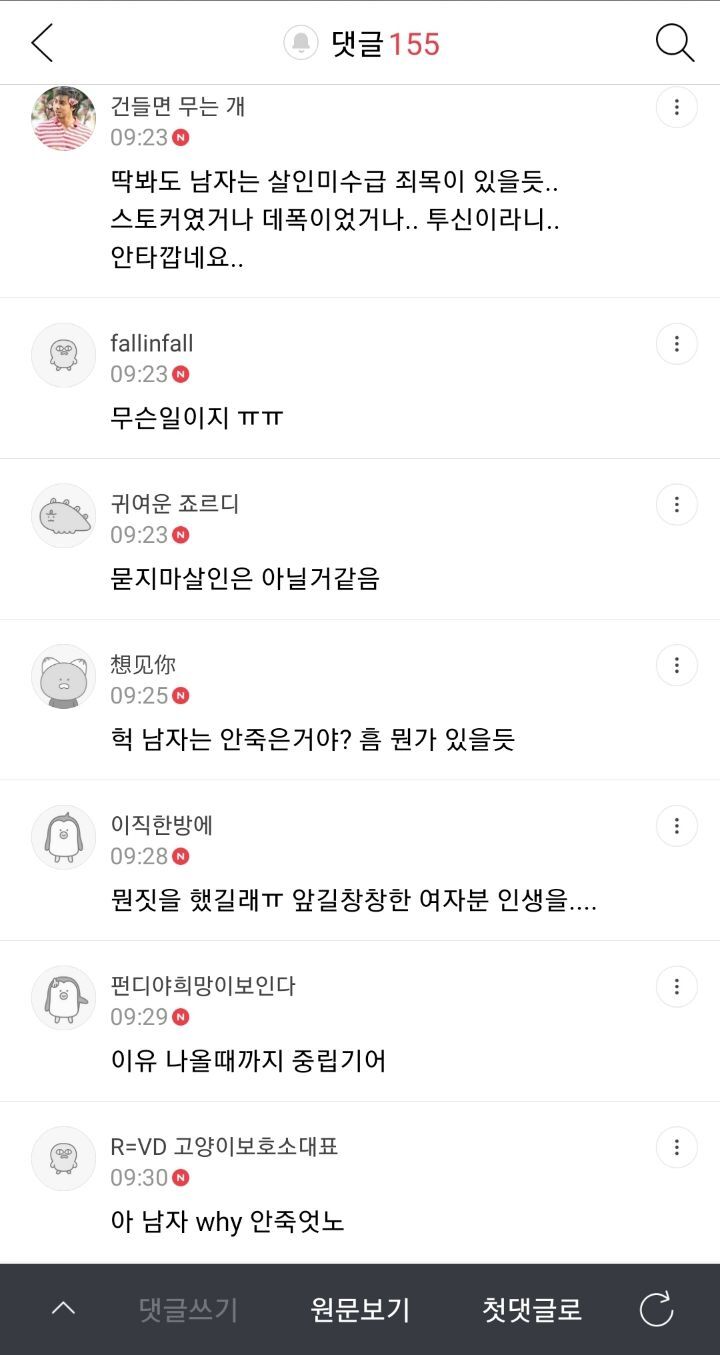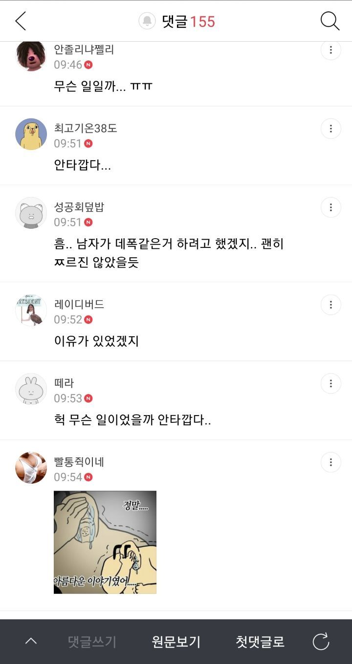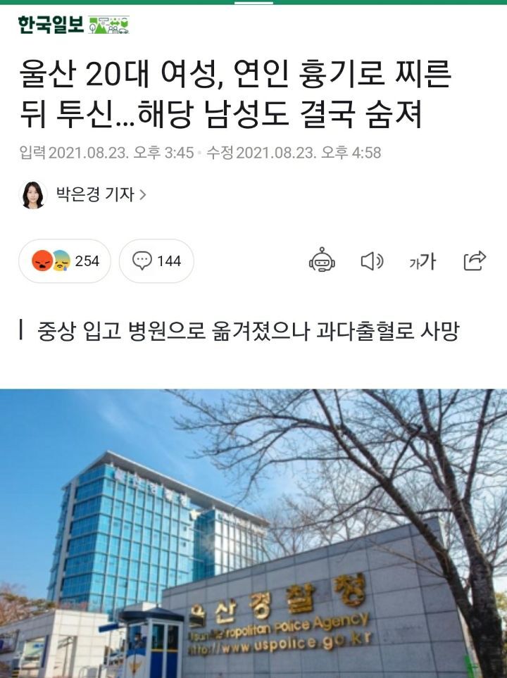 작성자대머리도의견을낼수가있나효? 작성시간 21.08.24 존나웃긴게 애초엨ㅋㅋㅋ여시들이 댓글달았던 기사내용도 저거아니고 그냥 울산에서 20대여자가 남자찔러서 중태다 라고밖에 안적혀있는 기사임 그런 기사에 걍 한남들하는거 똑같은 반응해준건데 쯨쯨